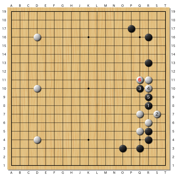今日実戦で、白6で下図のように変化されてさて対応が分からない。