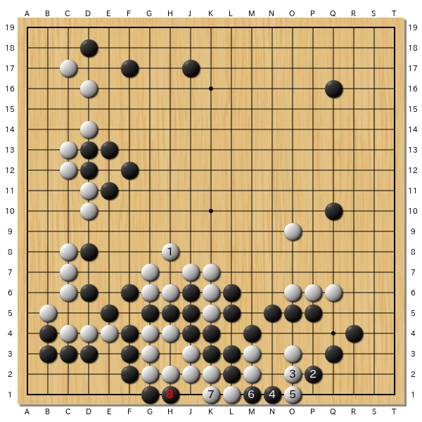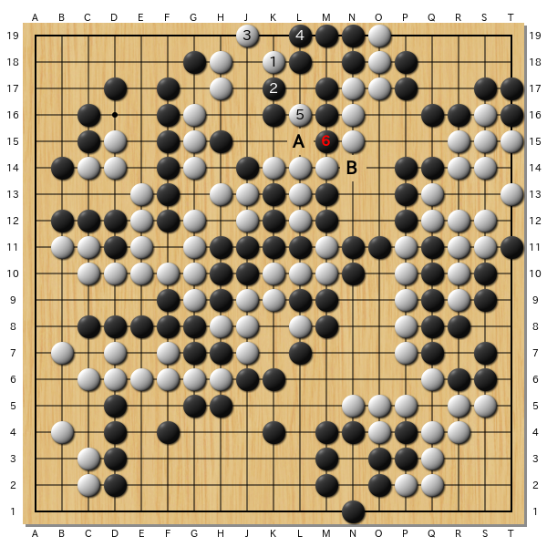 (1) 黒が△にハネたところ。白はどうするか。