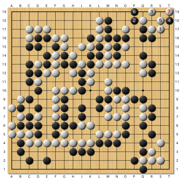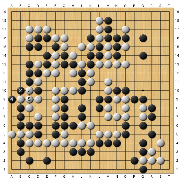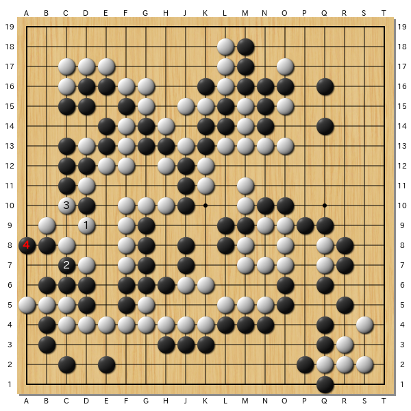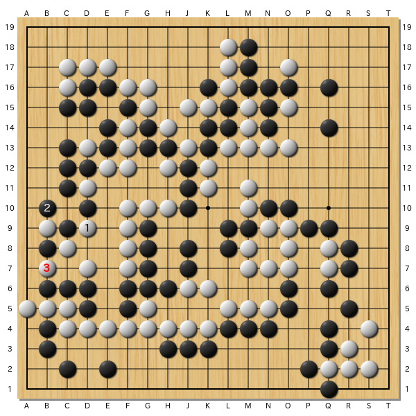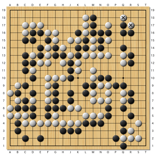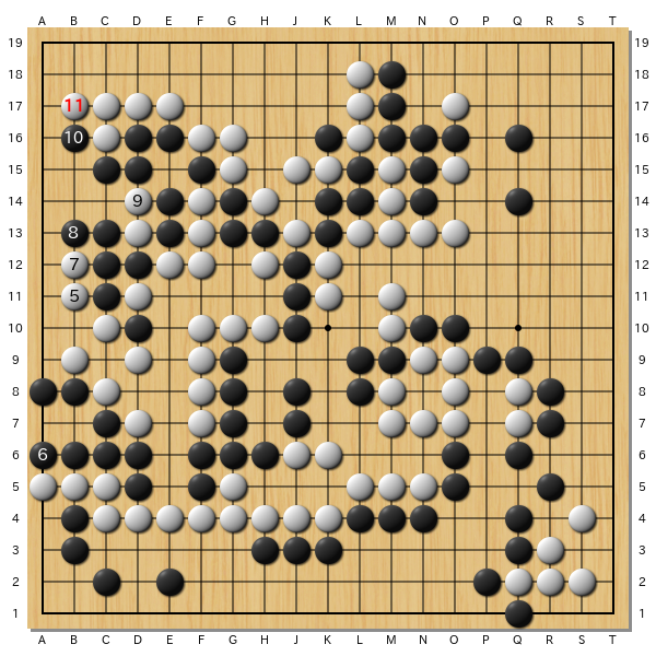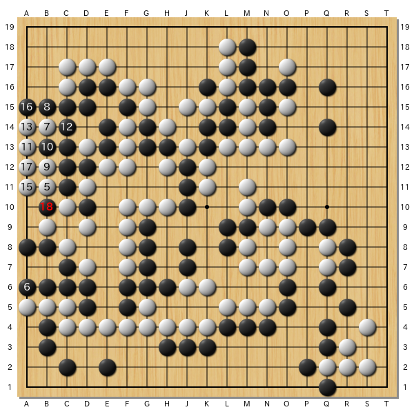 人気囲碁ブログの第2回黄龍士双登杯での吉田美香八段の対局についての記事で、「中国ルールでの半コウの価値が勝負を分ける」といわれていたのを検証してみたくて、無理矢理作ってみた。