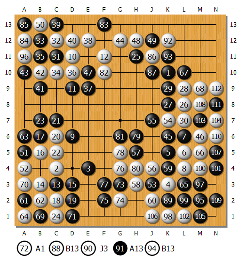 ニコ生で、囲碁プログラムZenが石田芳夫九段に挑む、という企画があった。朝起きたらすでに終わっていたので、プレミアム登録してタイムシフトで観戦。19路なら相手にならんだろと思っていたが、13路盤で、コミなし手合いで行われたようだ。