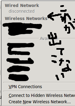 僕は、Ubuntu10.04を入れた。当初は、無線はウンともスンとも言わない状態。そもそも、上部パネルにあるネット接続アイコンをクリックしても、'Wired Network' しか表示されていない。Wirelessはまるで存在しないかのようだ。