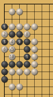 全体譜は覚えていないが、部分的にはこういう形。白△に置かれて何かまずそう。