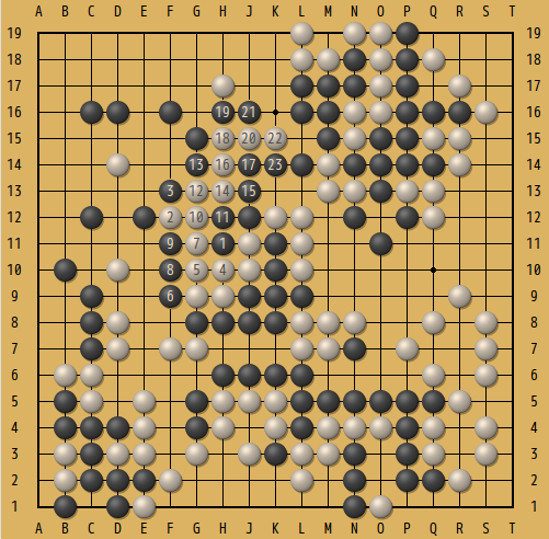 シチョウって、囲碁を覚えるとアタリの次くらいに教わるけど、難しいやつはやたらと難解。ゆるみシチョウとか、途中で方向を切り返すタイプとか、答えは必ずあるから分かれば一本道なのだが、読み違いが万一あればそれで勝負が決まってしまうから怖い怖い。