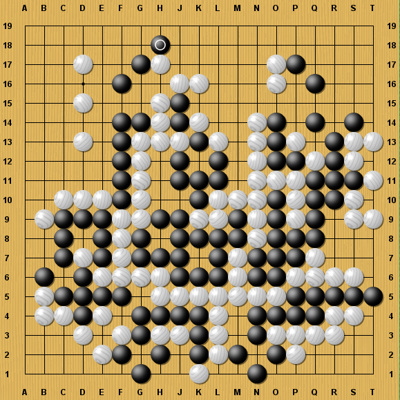 序盤に右辺を大きく取られて敗色濃厚かと思われたが・・・。いつの間にか右下が特大の攻め合いになっている! 相手がまだ気づいていない中、回ってきた白の手番。白黒双方の最善とその結果は?