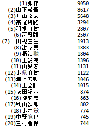7大タイトルを3つ占めている張棋聖が1位、その後に山下本因坊と井山名人が続く。5位まではいわゆる平成四天王+井山という構成になっていて、これは昨年と同様だ。