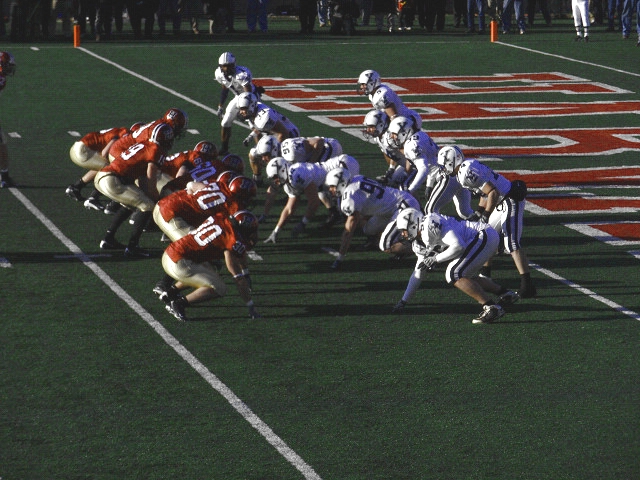 3rd quarterにキックによるポイントを許し、10-0で最終quarterへ。Crimsonは堅実なrun playで制限時間いっぱいを使い時間を稼ぐ。10点差は少なくとも2回の攻撃がなければひっくり返せない。困ったことに、時間を稼がれるどころかCrimsonのrunプレイがなかなか止まらない。