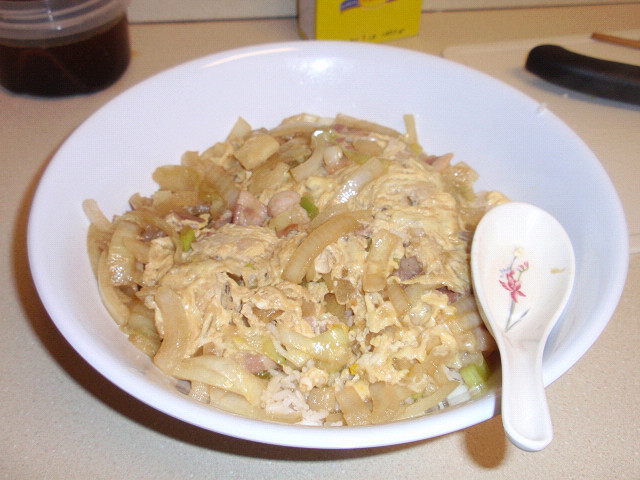 ベーコン、玉葱、ジャガイモ、ネギで偽親子丼を作ってみたら思いの外美味しかったのでこれからヘビーローテーションになりそう。